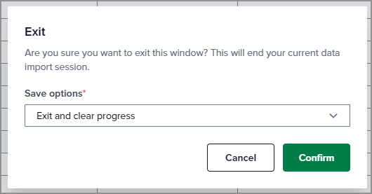Previously, closing the Import service always automatically saved all data. This could lead to confusion if you intended to start a new import but data from a previous session was still present. Now, if you select Exit and clear progress, all data on the Add lines sheet is removed from the workspace.