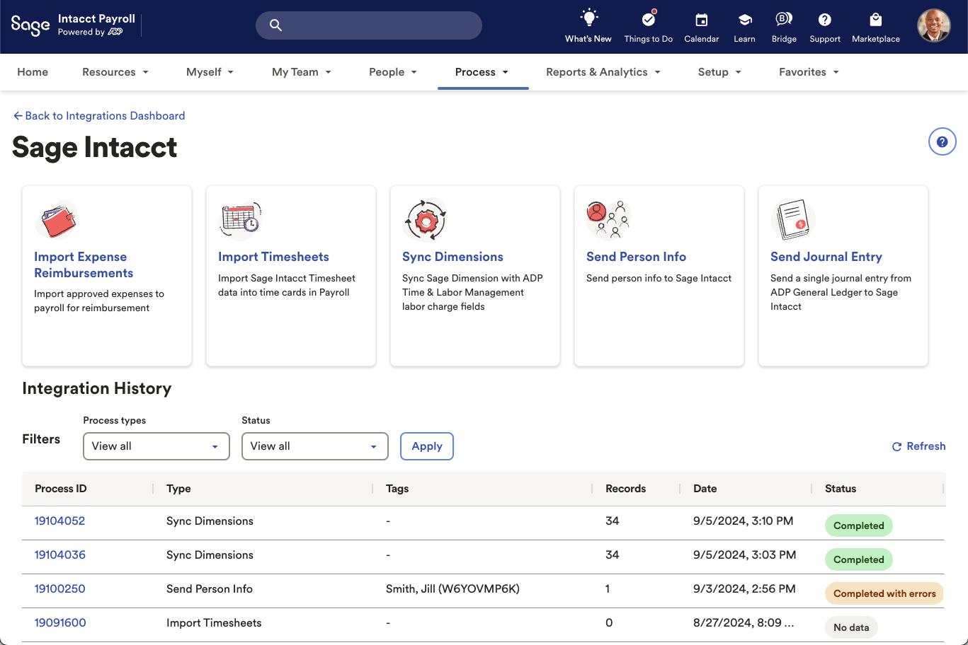 We've streamlined the integration between Sage Intacct Payroll and Sage Intacct. You no longer need to log in to a separate application to manage the integration—everything is now included in Sage Intacct Payroll.