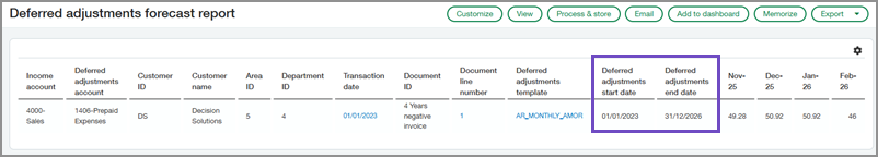 Now, you can view the Deferred adjustments start date and Deferred adjustments end date fields when running the report in Detail mode.