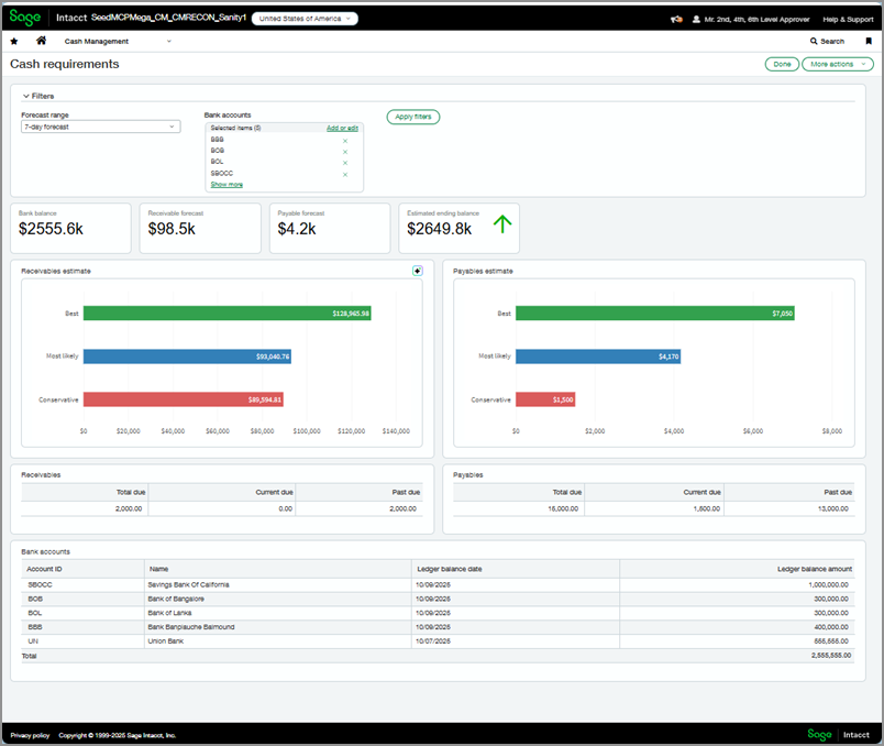 Cash flow insights: Use cash requirements estimates to support your decision making.